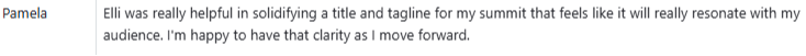 The coaching and feedback were what really moved the needle and helped me host a summit that achieved my goals. This was pivotal for positioning my summit in a way that massively grew my list, increased visibility and name recognition, created new partnerships with speakers, and increased sales in my post-summit launch and other promotions shortly after.
