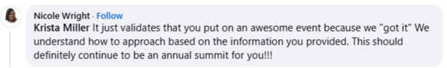 OUR SUMMITS TEND TO BE A HIT WITH ATTENDEES