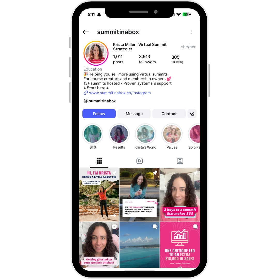 Follow along on Instagram where I share behind-the-scenes looks at what I'm working on, give off-the-cuff summit hosting tips, share the latest updates, and more.
